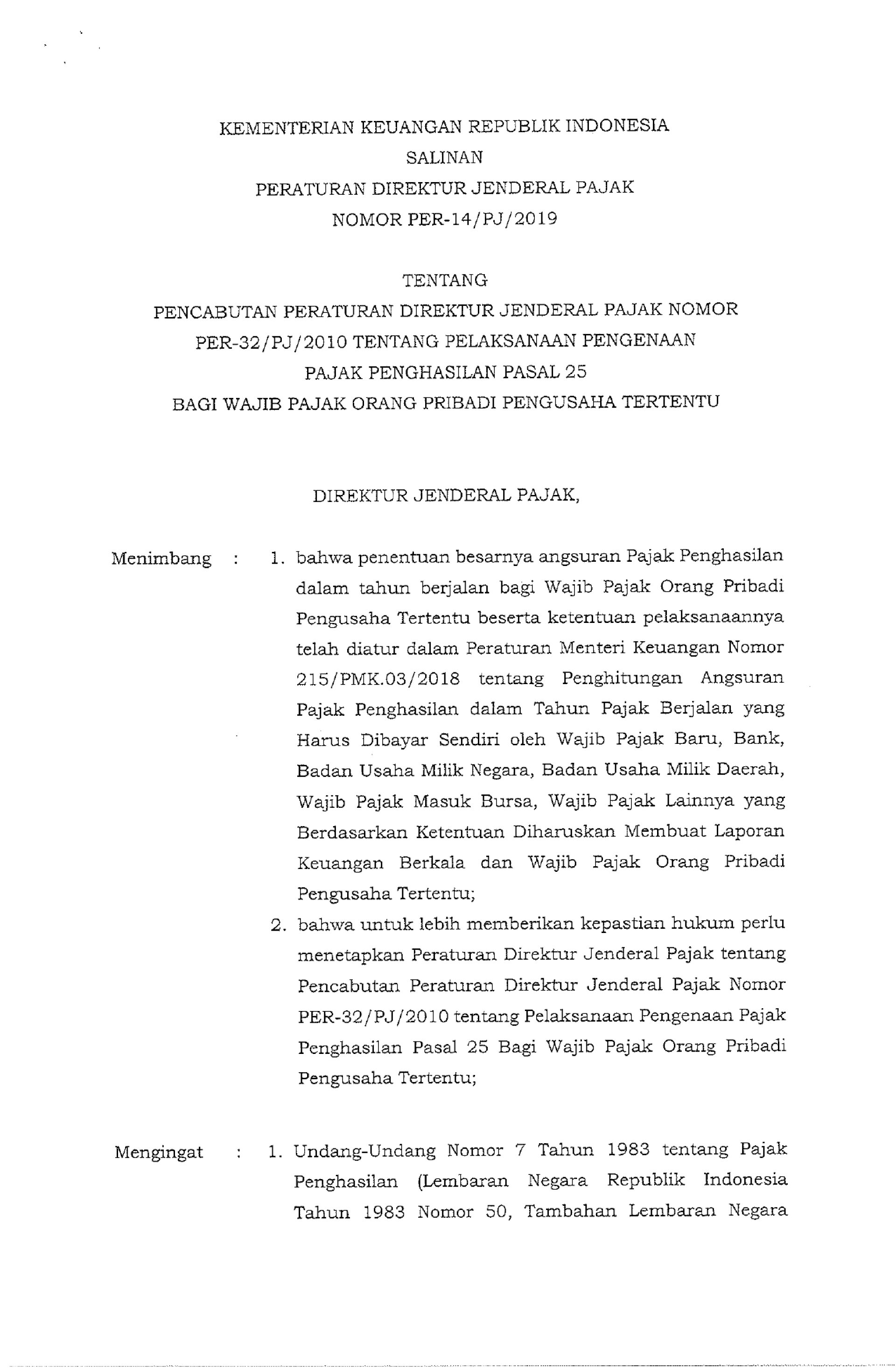 Peraturan Direktur Jenderal Pajak Nomor PER-14/PJ/2019