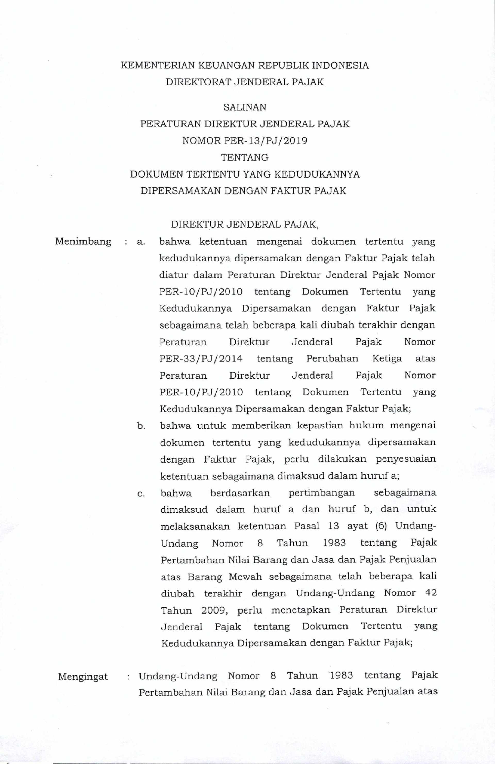 Peraturan Direktur Jenderal Pajak Nomor PER-13/PJ/2019
